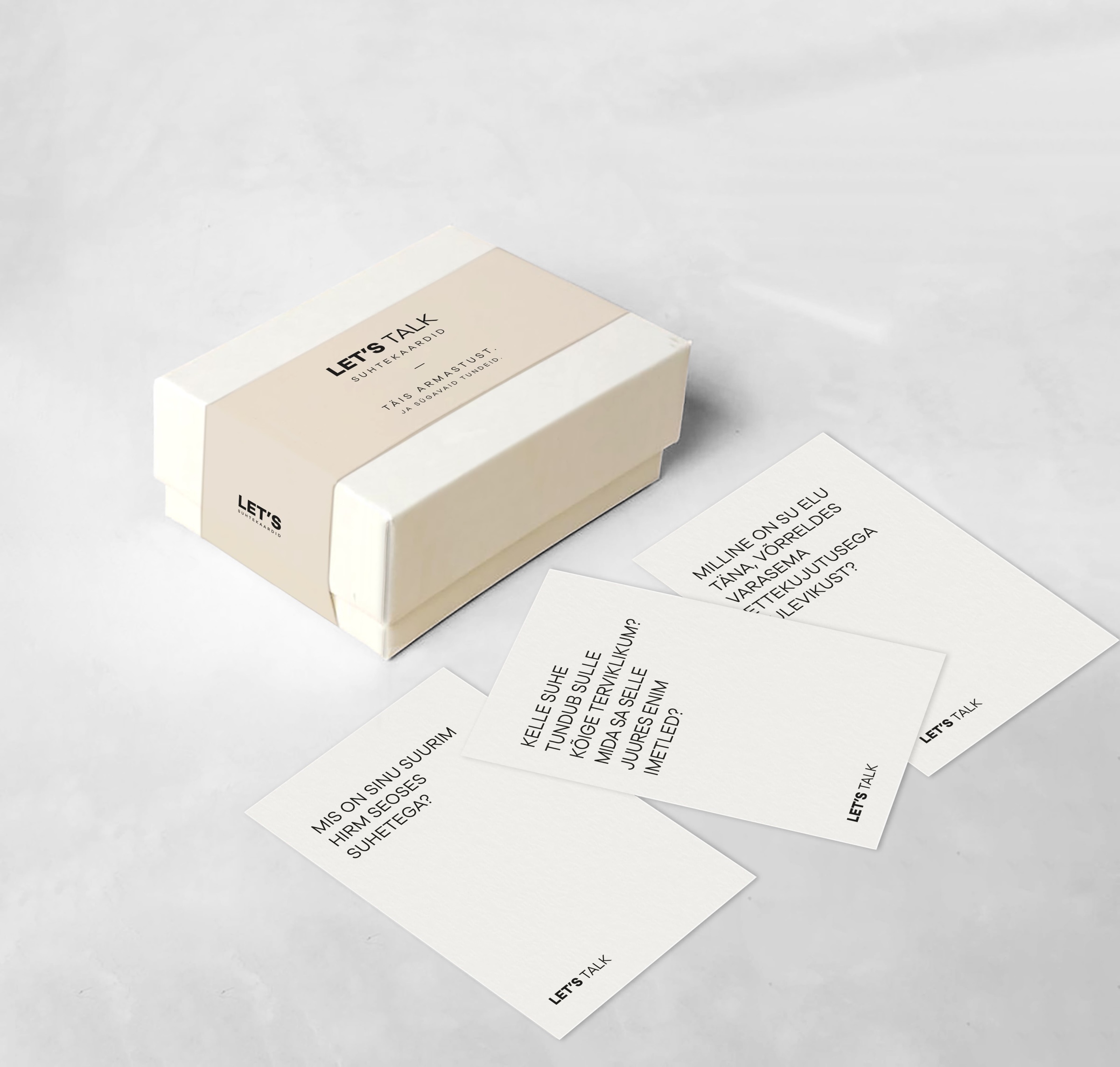 LET’S Talk on teekond avatuma ja tähendusrikkama suhtluse poole. Sobilik värskematele suhetele teineteise avastamiseks ja tundma õppimiseks, kuid sobib ka seltskonnas sõpradega kasutamiseks, et teineteist paremini tundma õppida.